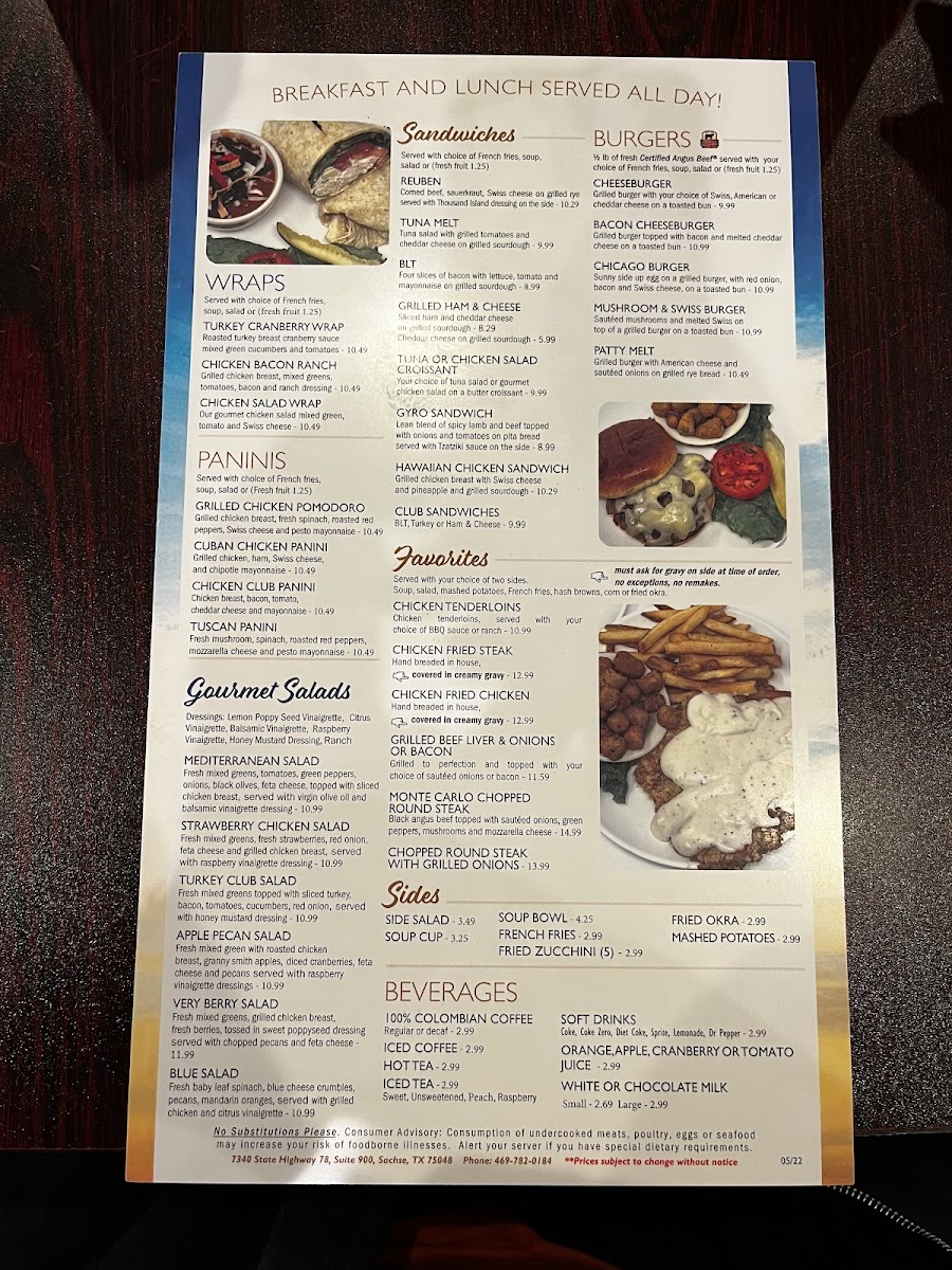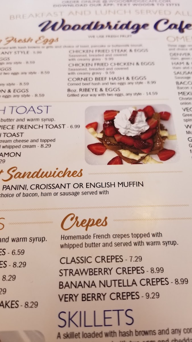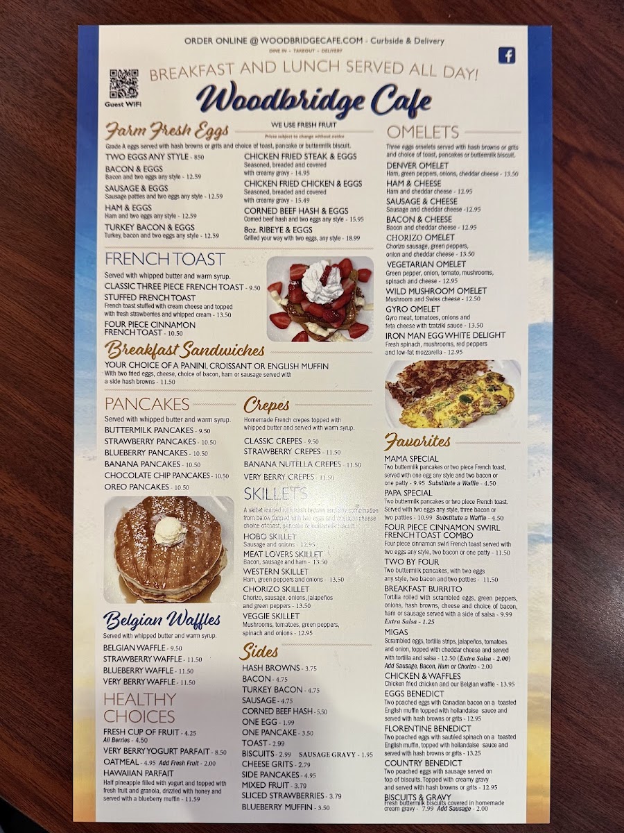 Introducing the menu at Woodbridge Cafe, located in Sachse, TX, is a delightful exploration of hearty American fare. Known for its warm ambiance, this cafe is an ideal spot for brunch or a quick lunch. Customers rave about the fluffy pancakes and crisp bacon, alongside options like the Reuben sandwich and unique Hobo Skillet. While some reviews noted the Chicken Fried Steak and gravy as lacking flavor, the freshness of ingredients shines through in dishes like sunny-side-up eggs and delicious sausage patties. Known for its friendly staff and reasonable prices, the cafe encourages a relaxed dining experience where patrons can enjoy their meals without feeling rushed. Whether you're indulging in a classic breakfast or savoring fried zucchini as a side, Woodbridge Cafe stands out as a local gem worth revisiting.